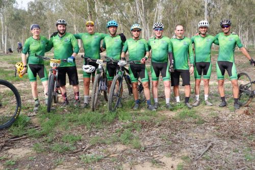 קבוצת רותם אמפרט נגב. תשעה רוכבים בתלבושת חדשה שמשתלבת עם העצים