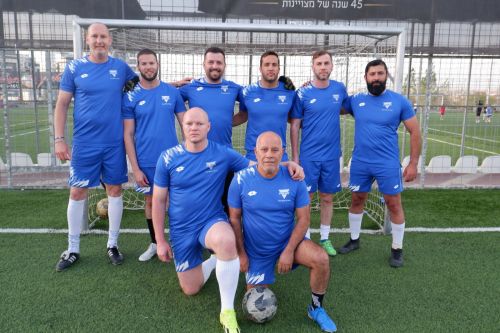 ארבעה ושוער של בזק א' בפתיחת המשחק. "חלודים"