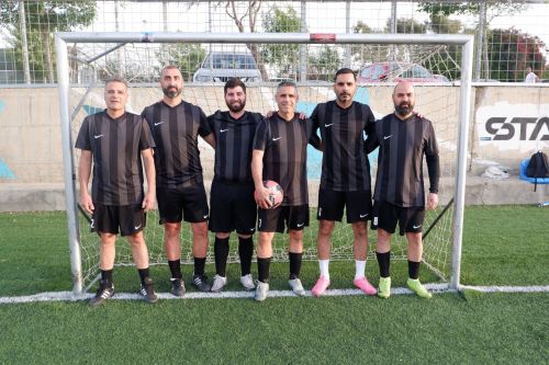 ארבעה ושוער של בזק א' בפתיחת המשחק. "חלודים"
